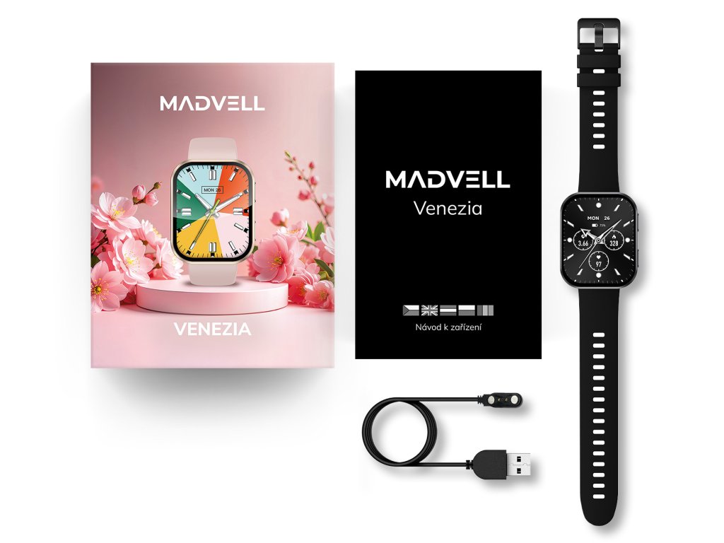 Madvell Venezia❤️ – dámské chytré hodinky inspirované italskou elegancí a módou, spojují špičkovou technologii s vytříbeným designem. Krásný AMOLED displej s úhlopříčkou 1,96" je jemně zaoblený a podtrhuje výjimečný charakter hodinek. Na výběr je více než 500 unikátních ciferníků ✨, díky kterým snadno sladíte hodinky se svým stylem i náladou. Sledují krevní tlak, srdeční tep, hladinu kyslíku v krvi (SpO₂), stres i kvalitu spánku. Hodinky připojíte ke každému chytrému telefonu s Android i iOS a zobrazují notifikace ze všech aplikací. Za kvalitou si stojíme – proto mají hodinky 3letou záruku ✅